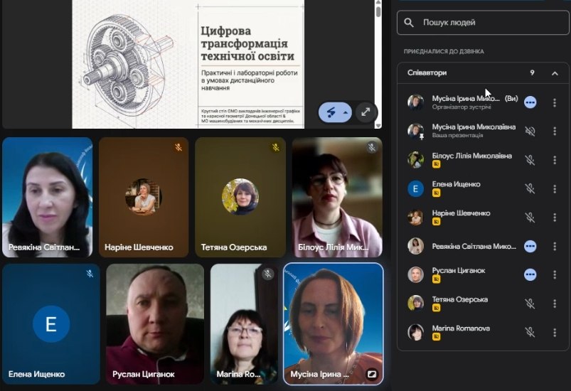 27 березня 2026 року відбувся спільний Круглий стіл «Цифрова трансформація технічної освіти: практичні і лабораторні роботи в умовах дистанційного навчання», організований ОМО викладачів нарисної геометрії та інженерної графіки Донецької області разом із методичним об'єднанням «Машинобудівних та технічних дисциплін» Маріупольського регіону.