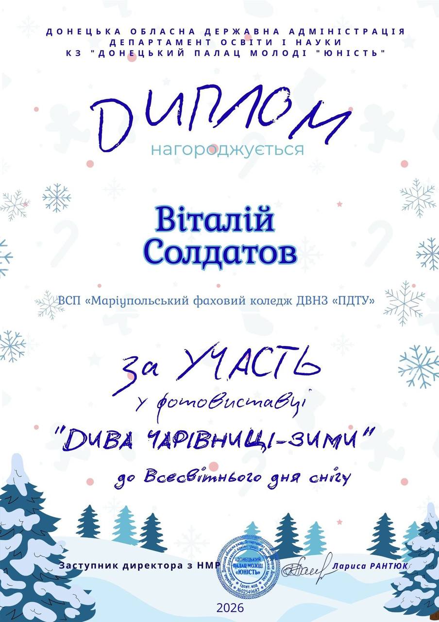 18.11.2025 відбувся виховний захід з учнями Курахівського ліцею «Престиж» Захід присвячено трагічним подіям 1932–1933 років в Україні. Головною метою таких зустрічей є збереження пам'яті про найжахливі сторінки нашої історії – Голодомор, який був штучно організований радянською владою. Такі заходи не тільки сприяють формуванню історичної пам'яті та критичного мислення щодо злочинів тоталітарного режиму, а й активізують громадянську позицію та патріотичні почуття учнів. ВСП «Маріупольський фаховий коледж ДВНЗ «ПДТУ» дякує за активну громадську позицію Курахівському ліцею «Престиж».