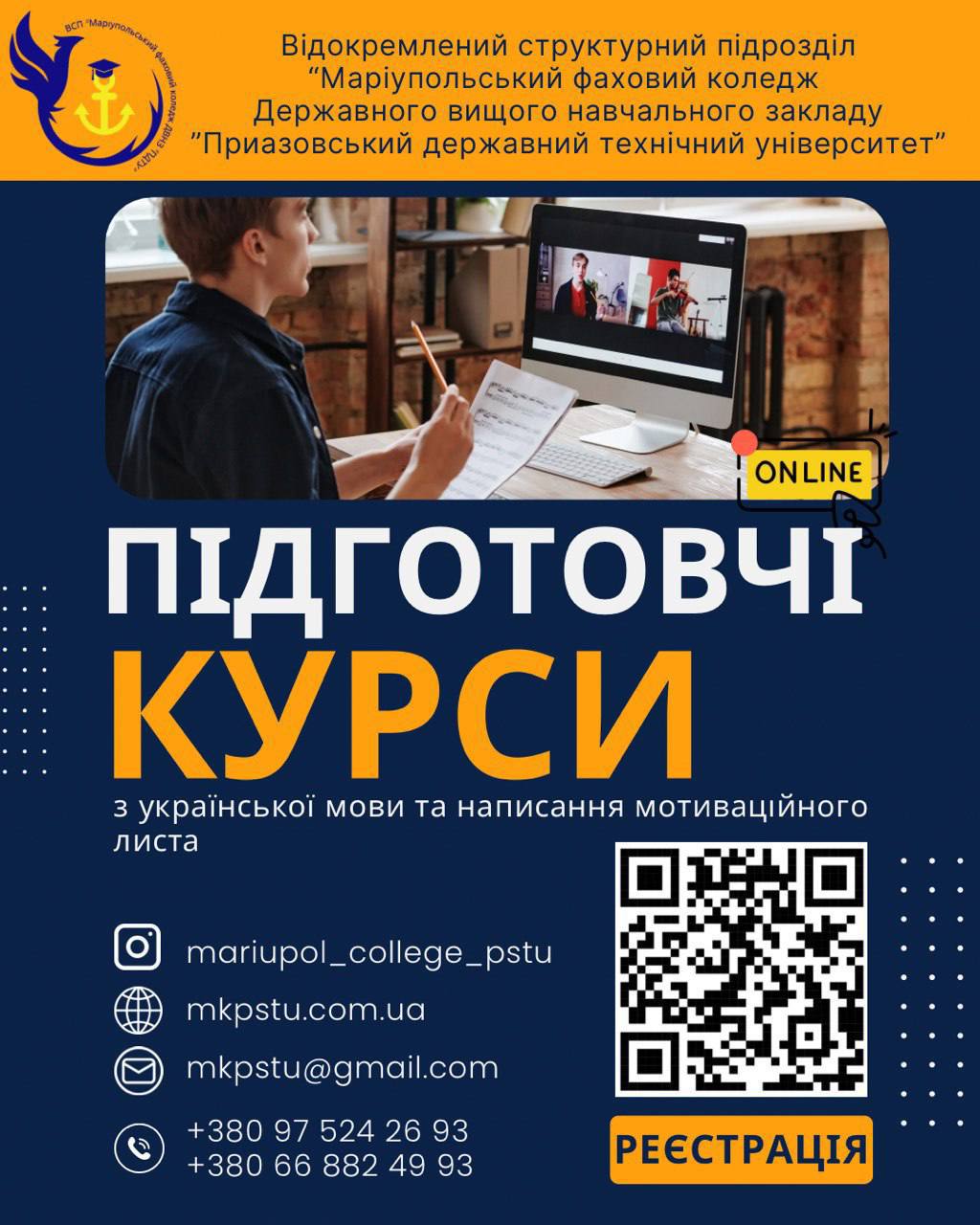 ВСП "Маріупольський фаховий коледж ДВНЗ "ПДТУ" (м. Дніпро) з квітня місяця відкриває підготовчі курси з української мови та написання мотиваційного листа.