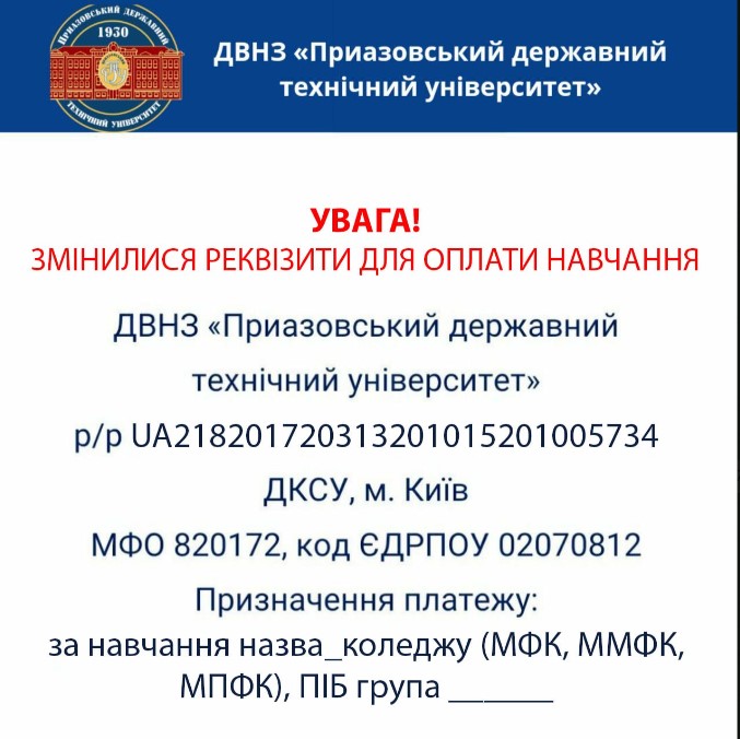 2-4 курси денної та 2, 3 курси заочної форми навчання: Наказ ДВНЗ "ПДТУ" №113-05 від 12.05.2021 Про встановлення вартості навчання студентів на 2021/2022 навчальний рік
